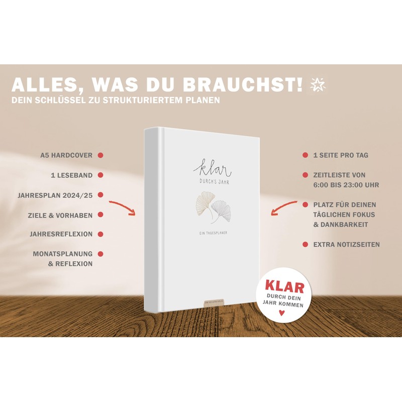 - Clear throughout the year: Our undated daily calendar with ribbon page marker keeps your head and back free for the beautiful things - happiness, satisfaction and clarity in everyday life