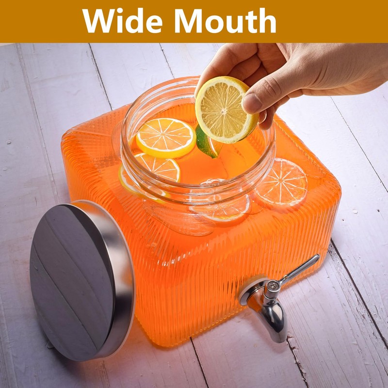 Einfache 1 Gallon Glass Drink Dispensers for Parties,1 Pack Beverage Dispenser with Stainless Steel Spigot,Glass Water Lemonade Dispensers Laundry Detergent Dispenser Punch Bowls for Outdoor