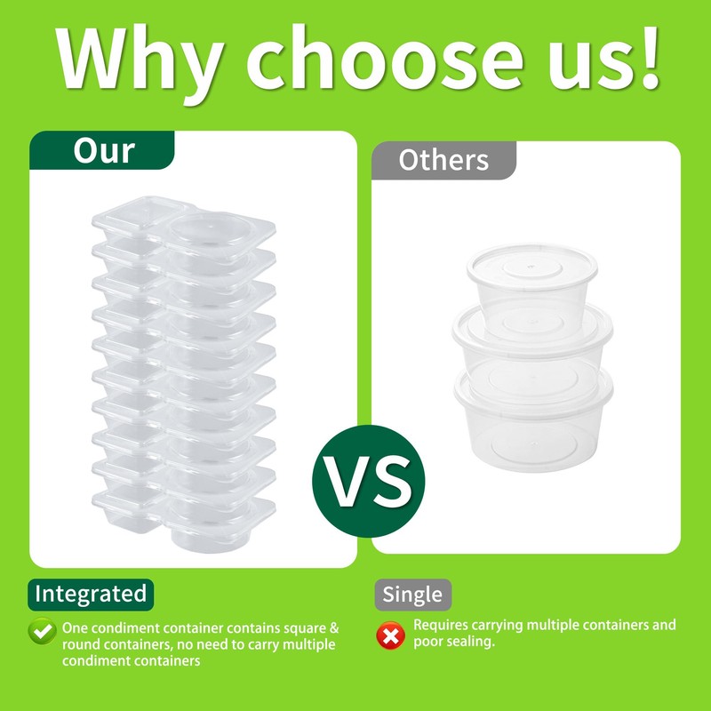 - Various Uses: These reusable snack containers with lids are nice for many uses--- ketchup, road trip snacks, Veggies, dip or (dry) fruit, crackers, oil or mayo, vinegar, etc. It can be used as a portion food measuring, for leftover storage, and it's a nice condiment for easy storage in the refrigerator. So that you can easily portion snacks in the refrigerator for an easy grip