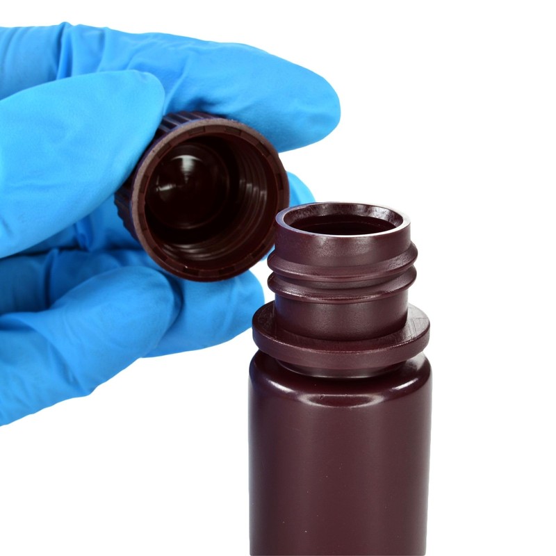 - PACK OF 12 AMBER REAGENT BOTTLES || Includes 12 15mL narrow-mouth HDPE reagent bottles with polypropylene caps, ideal for storing and transporting light-sensitive substances.