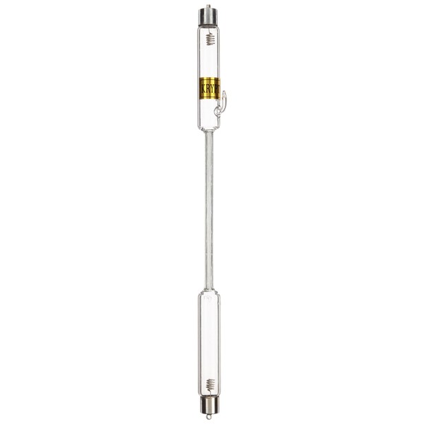 EISCO spectrum tube is used for demonstrating spectral lines of pure substances, and contains krypton (K) gas under pressure to produce light for spectral analysis. The tube has a 10.0cm capillary in the center for observing light wavelengths, and is straight form with side electrodes for conductivity. The tube measures 26.0cm (H), and is made of glass for transparency and resistance to heat. (H is height, the vertical distance from the lowest to highest point.) Glass is an inert brittle solid, heat-resistant, and typically transparent. It is relatively easily cut and shaped. The tube requires a spectrum tube power supply for operation (sold separately), and should be operated at 30-second on/off intervals for longer product life and safer use. The tube is suitable for high school or college students, or ages 13 to 21.