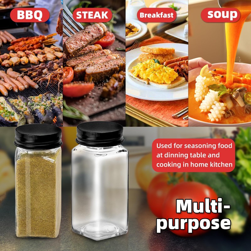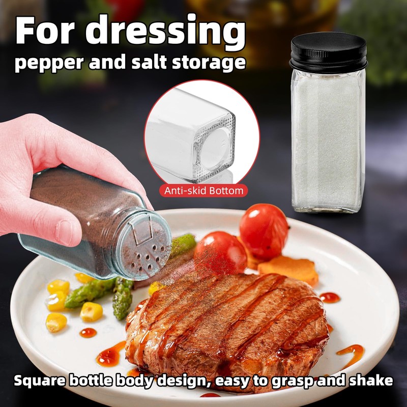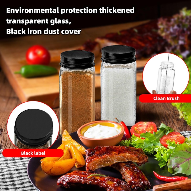 - PREMIUM THICK GLASS JARS: These spice jars is made of thickened glass with square shapes of high-transparency visibility, you can see the contents in the jars directly with what’s inside and how much left. Food-grade glass is healthy for food ingredients, totally BPA free, lead free and shatter-resistance.