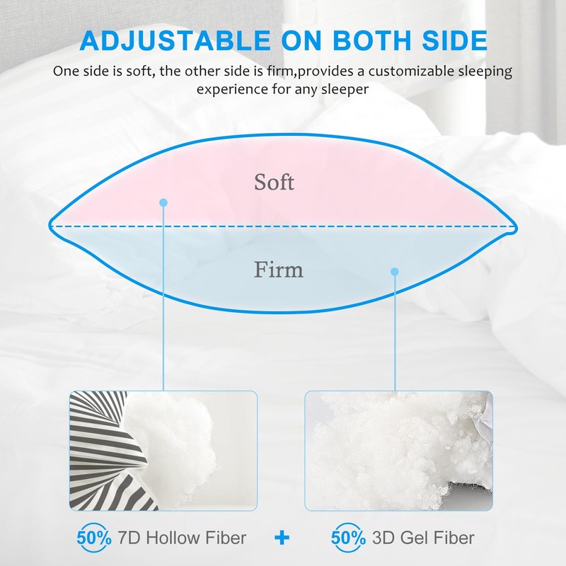• Balanced Comfort: The filling of the pillow consists of 50% Hollow Fiber and 50% Gel fiber, which provides a great balance of supple softness and plump firmness. The bed pillow is supportive enough and excellent for a back, side or stomach sleeper.