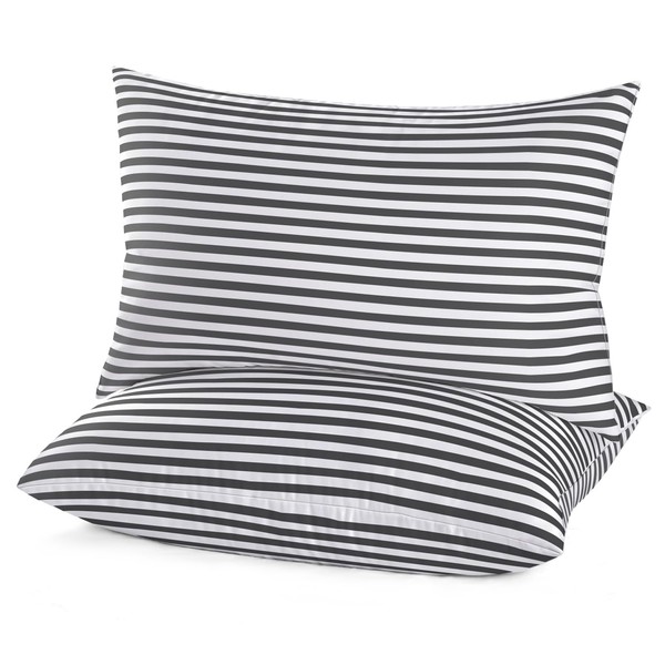 EIUE Bed Pillows for Sleeping 2 Pack Queen Size,Super Soft Down Alternative Microfiber Filled Pillows,Pillows for Side and Back Sleepers,20 x 30 Inches,Striped White Grey