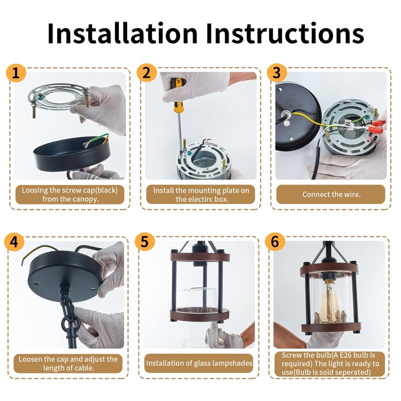 - Easy to Install: This farmhouse glass hanging pendant light come with all the mounting hardware for quick installation, Open bottom design makes it much easier for bulb replacement. UL standard for safety and quality. TIP: The glass of the chandeliers may be broken during transportation. We will provide a free exchange if you find any damage.