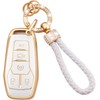 EKALA for Ford Key Fob Cover with Keychain Lanyard, 4 5 Buttons Soft TPU Keys Shells White Key Fob Cover Compatible with Ford F150 Explorer Mustang Edge Lincoln MKZ MKX MKC(Frd-2+3)