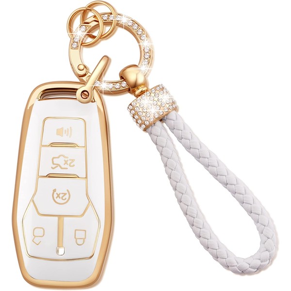 EKALA for Ford Key Fob Cover with Keychain Lanyard, 4 5 Buttons Soft TPU Keys Shells White Key Fob Cover Compatible with Ford F150 Explorer Mustang Edge Lincoln MKZ MKX MKC(Frd-2+3)