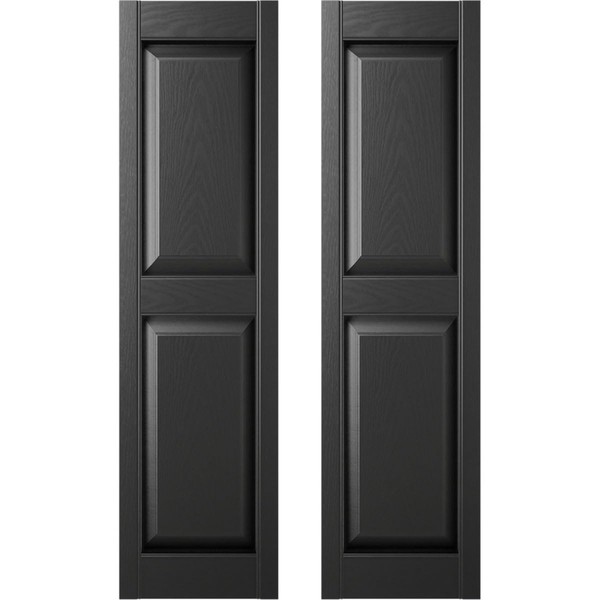 Ekena Millwork 14.5 in. W x 78 in. H Builders Edge, Custom Two Equal Panels, Raised Panel Shutters, Includes Matching Installation Spikes (Per Pair), 002 - Black