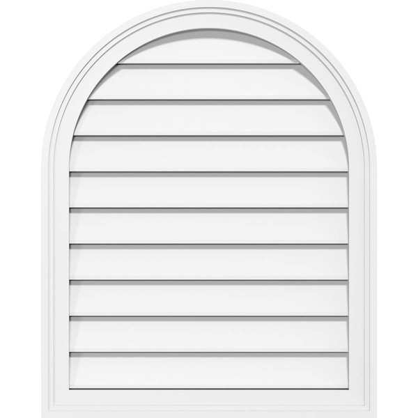 Ekena Millwork GVPRT26X3802SF Round Top Surface Mount PVC Gable Vent, 26"W x 38"H, Factory Primed White