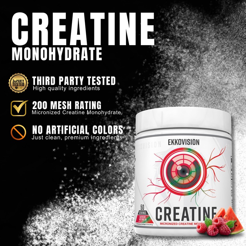 Ekkovision Creatine Monohydrate Powder, Micronized, Raspberry Watermelon, Pre & Post Workout Supplement for Men and Women, Energy Support, Easy to Mix in Shakes, Smoothies & Beverages, 50 Servings