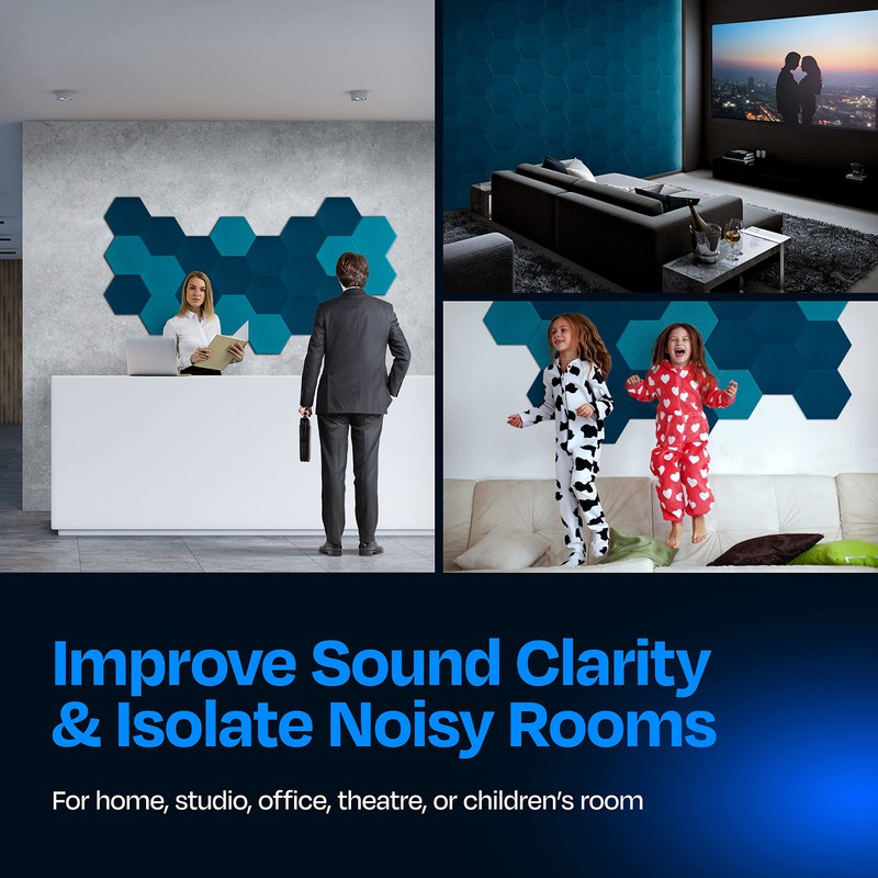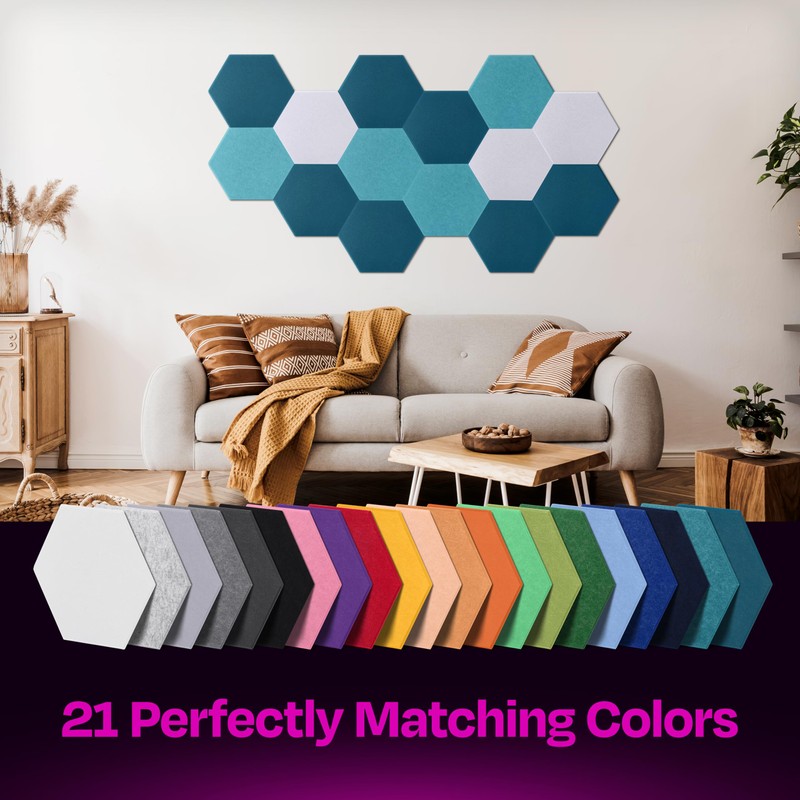 - SUPERIOR NOISE REDUCTION PANELS: Each soundproofing panel is precisely cut of high-density, 5.9oz/ft^2 (1800gr/m^2) poly-fiber panels. Our sound proofing padding for wall reach a NRC rating of up to 0.95, making a big difference to the sounds we hear around us. Pick these hexagon acoustic panels over the old acoustic foam panels and create a beautiful room with superior sound quality.