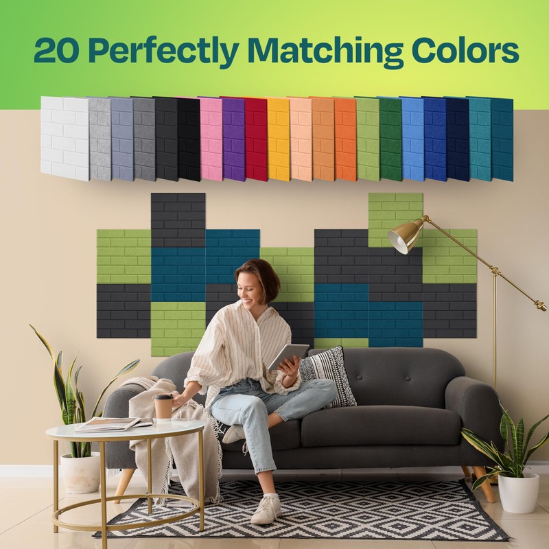 - [MODERN BRICK DESIGN]: Our sound proof panels for walls feature a unique brick pattern that adds a modern touch to any room. Available in various colors, they help you design beautiful, noise-reducing spaces that elevate the look and functionality of your decor.