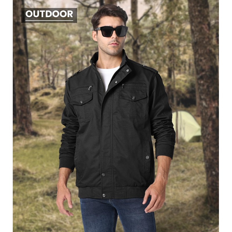 - Designs: This lightweight millitary cargo jacket with stand collar design for better wind protection in cold weather