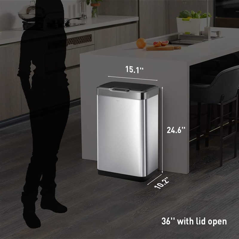 - Premium Motion Sensor Technology - Experience the smoothest, most seamless lid opening and closing technology with this EKO hands-free automatic trash can.