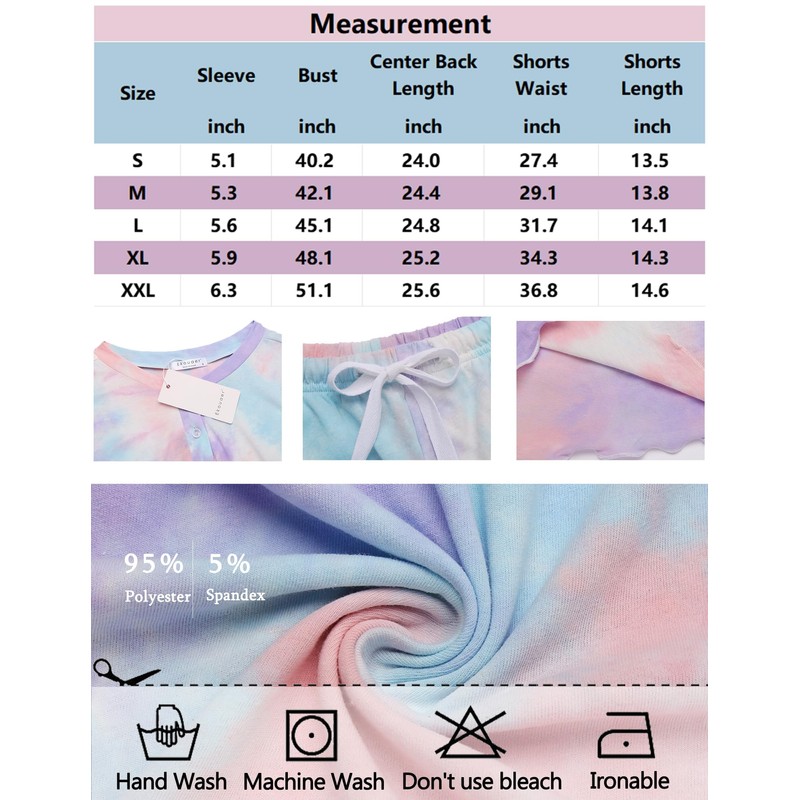 - 【Features】Ekouaer 2 packs Pajama Sets features short sleeve,button down henley neck pajamas tops,and elastic waistband,adjustable waist drawstring pjs shorts.Cute print,loose casual lounge sets,it is a must-have pajamas for your wardrobe.
