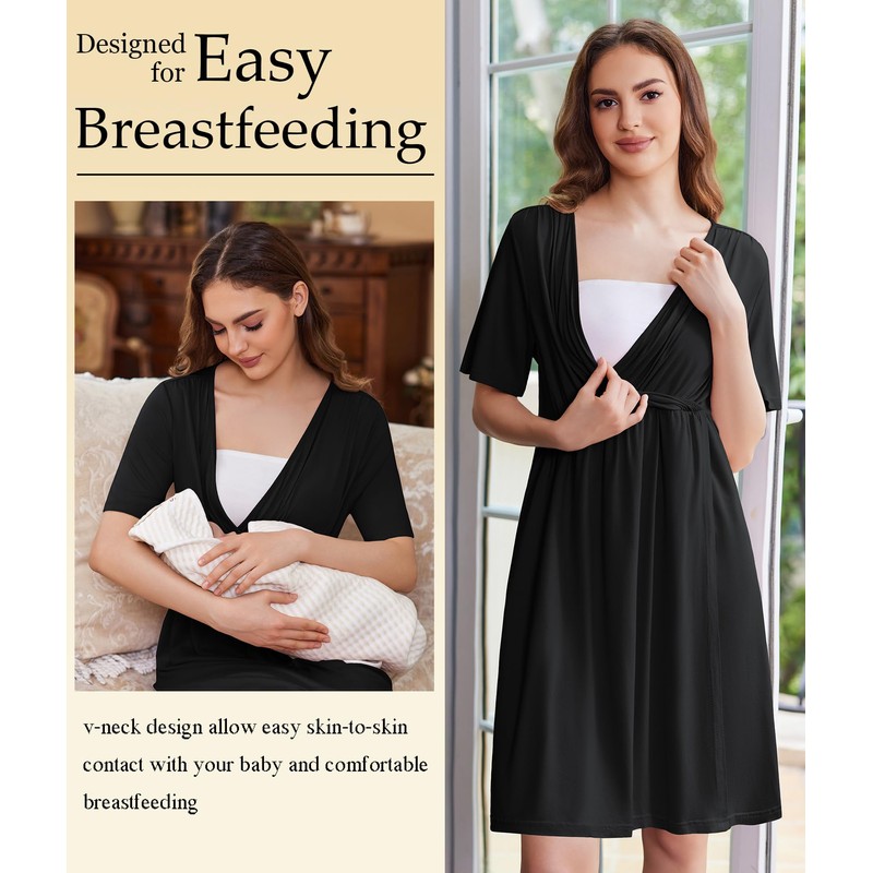 - ❤Labor and Delivery Gown for Hospital: Skin-friendly and comfortable material, suitable for mothers with increased skin sensitivity during pregnancy, and the ultra-stretchy fabric is ideal for skin contact. Short sleeve birthing gown can thin enough to keep you cool in the summer and warm in the winter.
