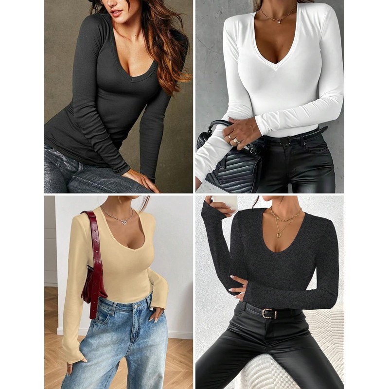 - Various Occassions: The flattering deep V-neck and body-hugging fit add a touch of allure, whether you're dressing up for a night out, date, or party or keeping it chic for work, travel, or casual weekends, this sexy V-neck long sleeve top effortlessly transitions from day to night.