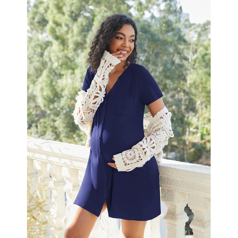 - 【Skin-Friendly Fabric Stretchy Material】This Ultra Soft Maternity Nightgown Dress crafted from 95% breathable polyester and 5% stretchy spandex, this nursing nightgown offers a silky soft feel ideal for sensitive pregnancy skin, while its lightweight and short sleeve design keeps you cool in summer yet modest enough to conceal postpartum changes.