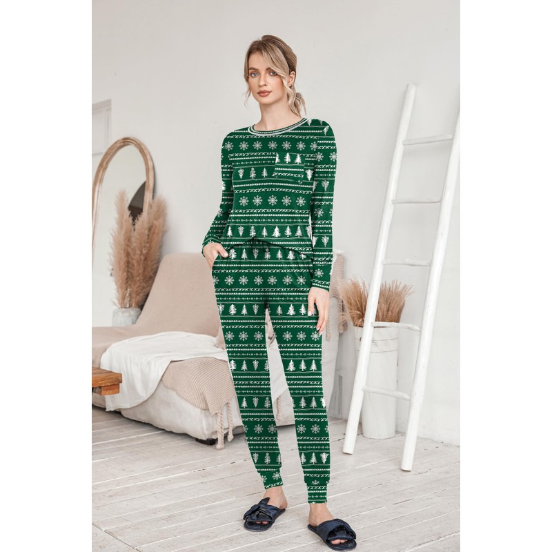 Ekouaer Pajamas Women's Long Sleeve Pj Set Soft 2 Piece Loungewear Sleepwear with Jogger Pants S-XXL Green with Christmas Trees XXL