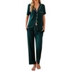 Ekouaer Women Pajamas Set Button Down Sleepwear Short Sleeve Nightwear with Long Pants Soft Pjs Set S-XXL Dark Green XL