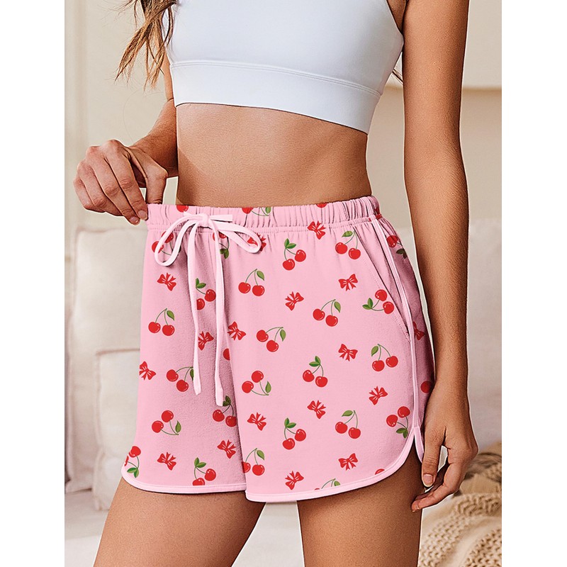 Ekouaer Womens Pajama Shorts Elastic Waist Sleep Shorts Stylish Lounge Shorts Casual Comfy Sweat Shorts Women Pj Shorts with Drawstring Cherry