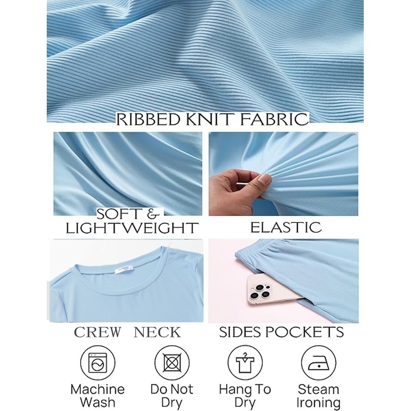 - Feature: 2 piece lounge sets, Loose ribbed knit lounge sets, crew-neck/o neck, skinny ribbed pajama sets, skim matching outfits sets, high waisted, Short Sleeve matching sets, variety color for choice