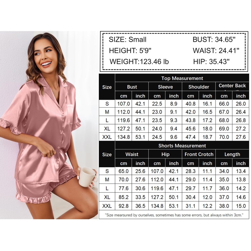 - [Occasion] Women's Ruffle Silk Satin Pajamas Set, is great for summer daily wear.Comfortable and suitable for lounging and sleeping,pajama party,weeding party,girls day,bridal sleepwear,indoor, living room, bedroom, hotel, vocation, travel, and daily sleepwear.