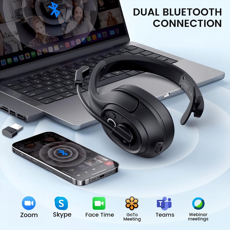• [Up to 164ft Farthest Wireless Connection] The upgraded H1 Plus Bluetooth Headset uses mature Bluetooth 5.0 technology and provide a 99 feet/30 meters wireless connection away for better connectivity, faster transmission and better stability, meet your needs in call centers, construction sites, warehouses and more. The wireless distance can reach up to 164 feet/50 meters if there are no obstructions, equivalent to the distance of 2 container.