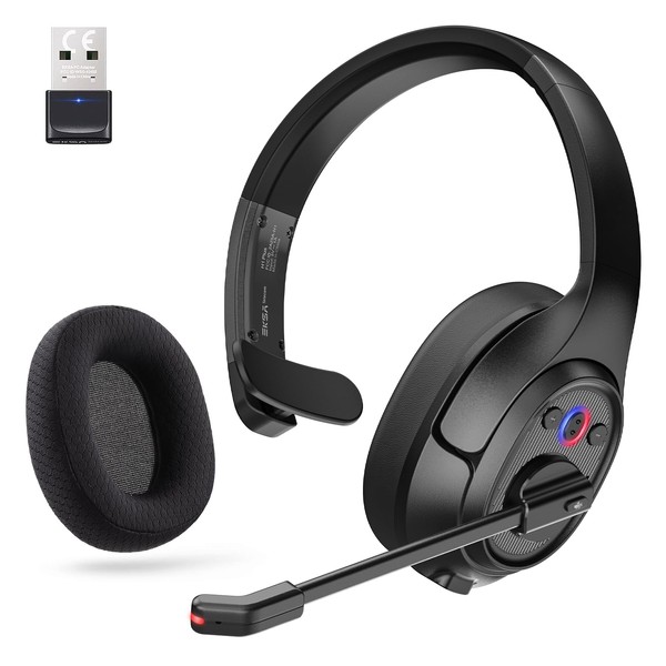 EKSA Bluetooth Trucker Headset, Wireless Headset with Environmental Noise Cancelling Microphone & USB Dongle, 99ft Long Range, Volume Control, Single Ear Trucker Headphone, Works with PC/Mac/Phone