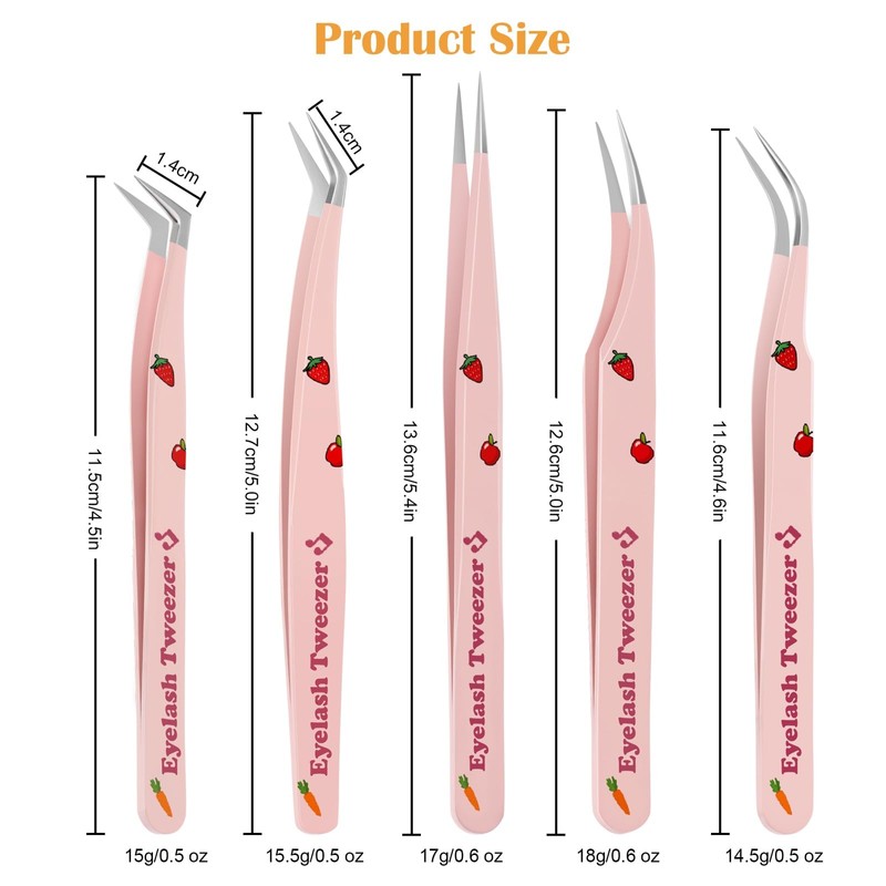 5 PCS Lash Extension Tweezer Set