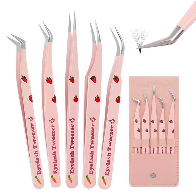 EKYSSO Lash Extension Tweezers Set, 5 Pcs Eyelash Tweezer, Precision Lash Tweezers for 2D-6D Volume & Individual False Lashes Extensions