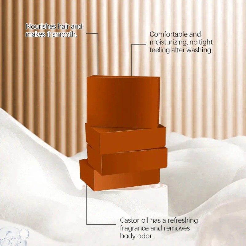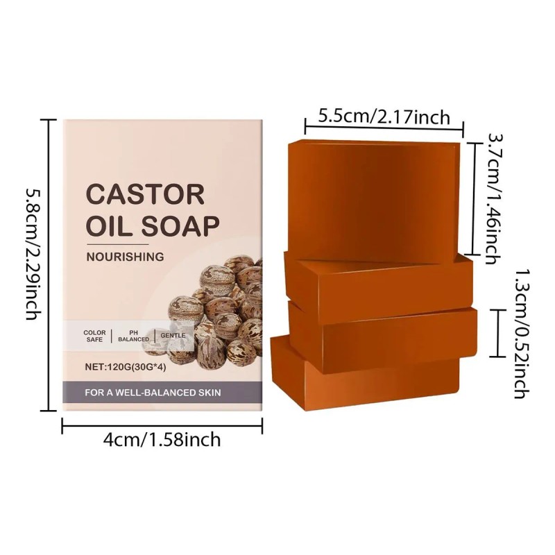 El jabón de aceite de ricino nutre el cabello, desodoriza el cuerpo, elimina la suciedad y el aceite lo suaviza y emite 120 g.