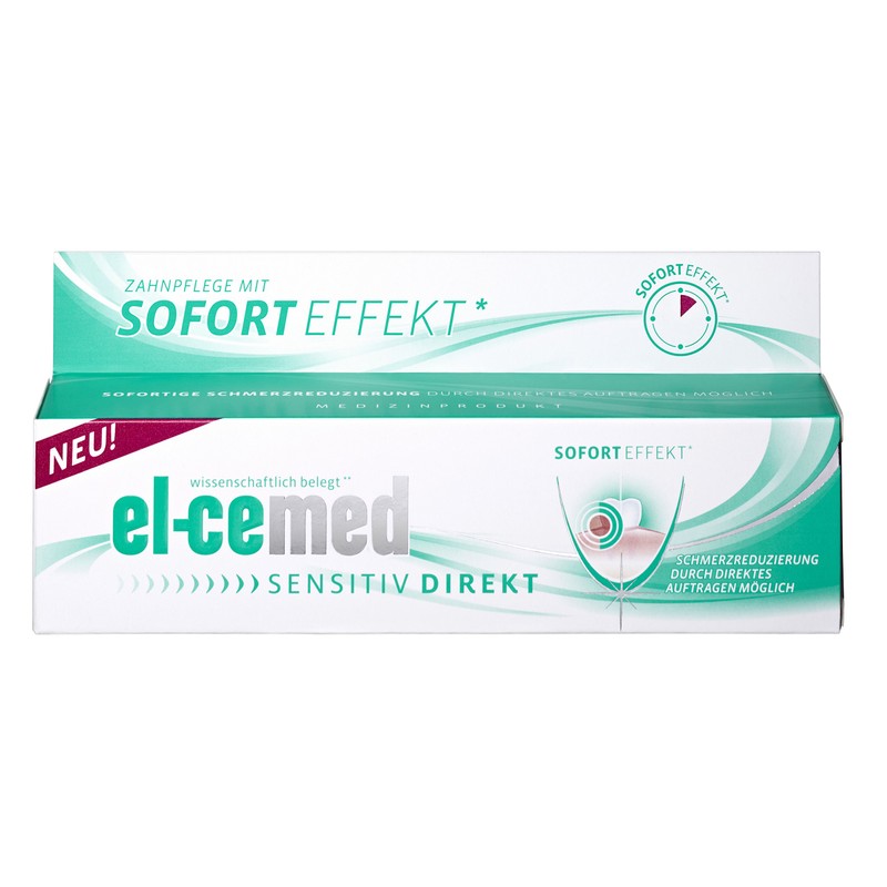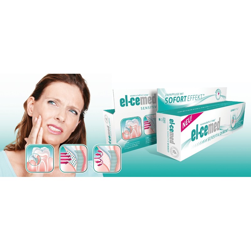The solution:The active ingredient complex contained in el-ce med Sensitive directly seals these channels and can thus immediately relieve the pain. We recommend massaging an approximately pea-sized amount with your fingertip once a week into the sensitive areas to achieve direct relief. For a long-lasting effect, it is recommended to brush the teeth directly twice a day with el-ce med Sensitive - as el-ce med Sensitive not only has a pain-relieving effect, but also effectively protects teeth and necks from tooth decay thanks to an optimal fluoride content.