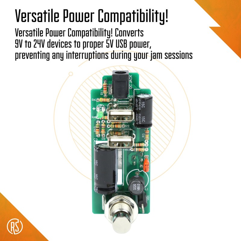 - Funciona con tu placa de pedales: soporta dispositivos de 9 V a 24 V CC, convirtiendo voltaje a alimentación USB de 5 V mientras proporciona un funcionamiento estable, evitando cualquier interrupción durante tus sesiones de atasco.