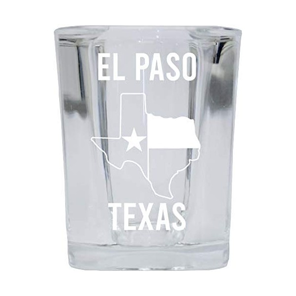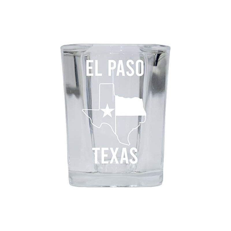 El Paso Texas Souvenir Laser Etched 2 Ounce Square Shot Glass Texas State Fla...