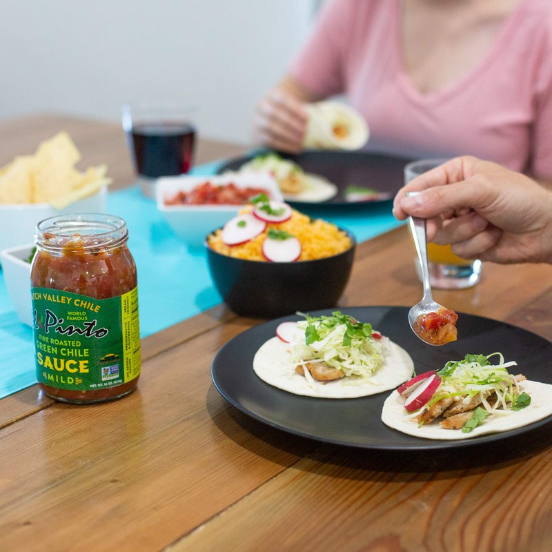 - USE FOR VARIETY OF DISHES: Savor the flavor or medium roasted green chilies as a topping or ingredient in your next appetizer or dish. Great on any meat, eggs, fish or chips for authentic new Mexican flavor. Our tasty salsa will only enhance your meals. We recommend adding it to Mexican cuisine, like enchiladas, fajitas, chili, and tacos. Spice up your tortilla soup, fish, or chicken, or simply use this salsa as a dip.