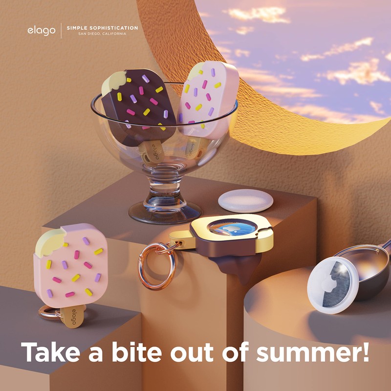 elago Ice Cream Case Compatible with AirTag Case, with Air Tag Keyring - Fall Protection, Carabiner (for Tracking Dogs, Keys) Locator Not Included (Strawberry)
