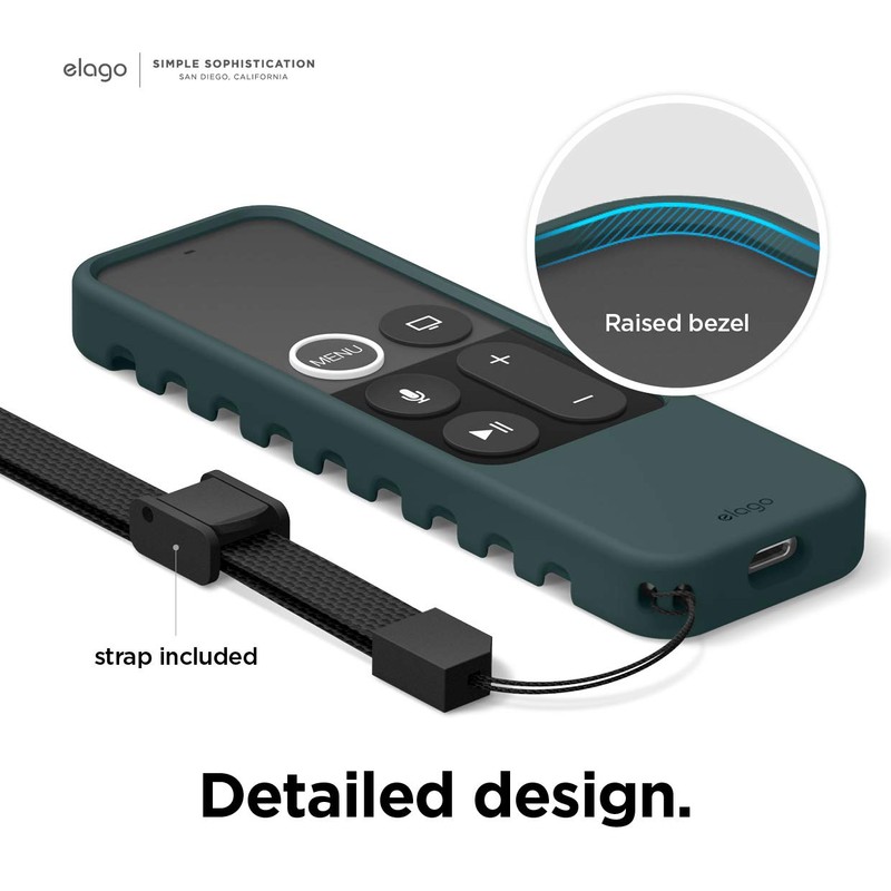 elago R3 Protective Case Compatible with Apple TV Siri Remote 1st Generation (Midnight Green) - Extra Protection, Durable Silicone, Lanyard Included, Full Access