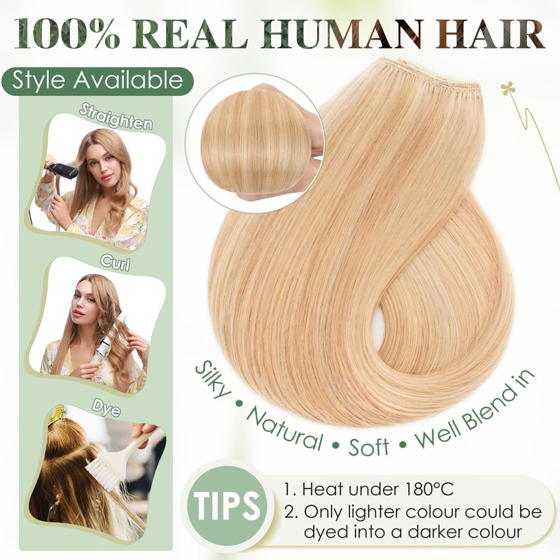 - Thin Thickness Hair Weft: 1 pack for thin hair or just for adding volume, 2-4 packs for thick hair.(Hair Colour: #18/613 Ash Blonde Mix Bleach Blonde - Hair Length: 20 Inch - Extension Weight: 70 g)