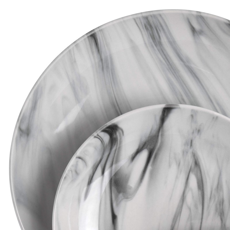 - CRAFTED FROM STONEWARE - This tabletop dinnerware set is crafted from quality stoneware and finished in a fine marble pattern for a beautiful marble look.