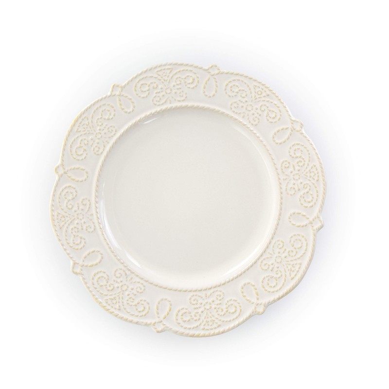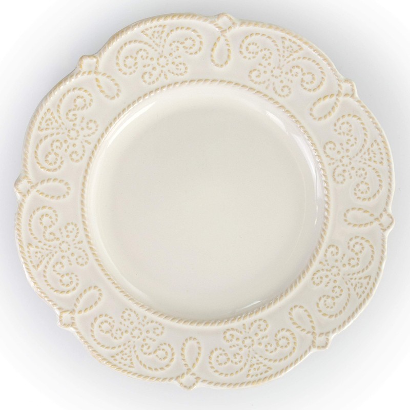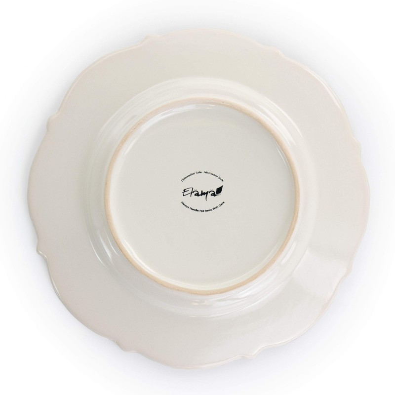 Elama Round Decorated Stoneware Scallop Embossed Dinnerware Dish Set, 16 Piece, Luna