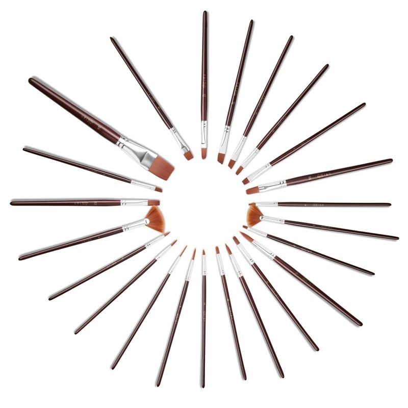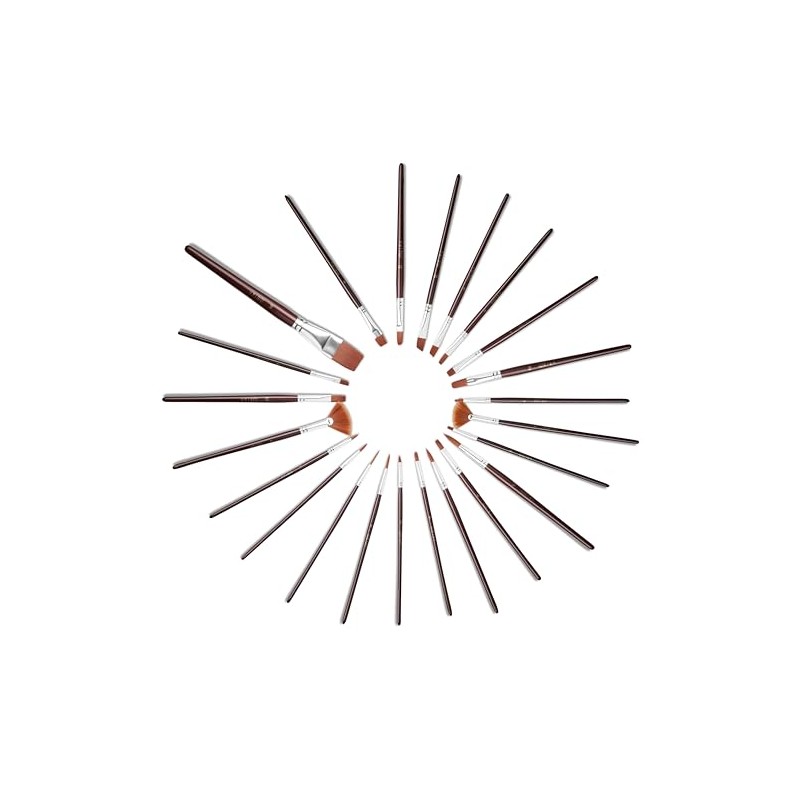 - VARIETY SET OF 24: This artist paint brush set includes 5 flat, 5 round, 5 filbert, 3 angular, 2 chisel blenders, 2 fan brushes, 1 flat wash, and 1 script brush. These high-quality artist paintbrushes are designed to handle everything from broad coverage to intricate detail with ease and precision.