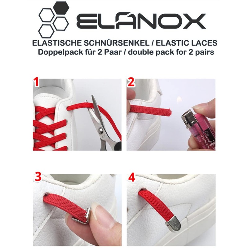 - More comfort: designed for maximum comfort when putting on your shoes. Our elastic laces make annoying tying unnecessary, as the shoes are held securely on the foot thanks to the strong pulling force of the rubber bands.