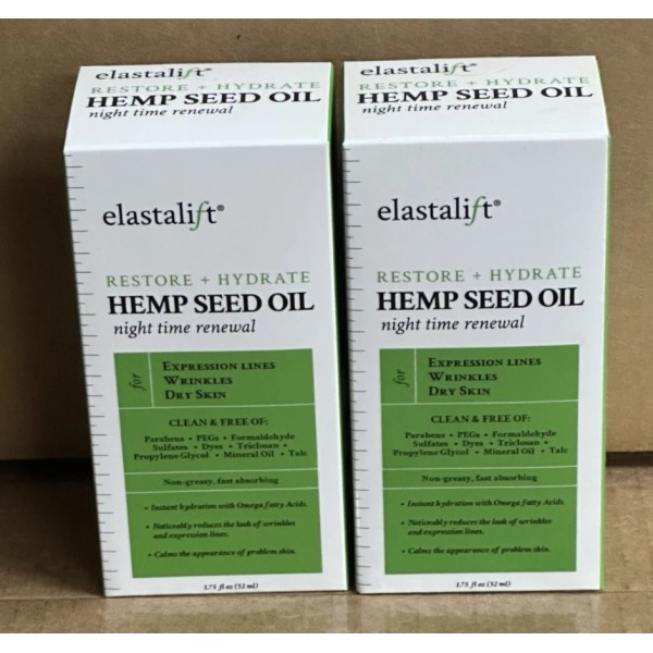 Elastalift 2 PACK Elastalift Restore + Hydrate Hemp Seed Oil Night Time Renewal 1.75 oz
