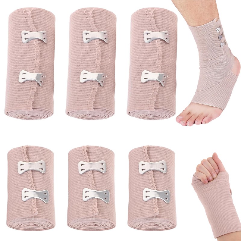 Elastic Bandage, 6 Rolls, Elastic Bandage 2 Sizes, Elastic Bandage with Metal Clips, Elastic Gauze Bandages, Used to Calm Injured Knees and Wrists