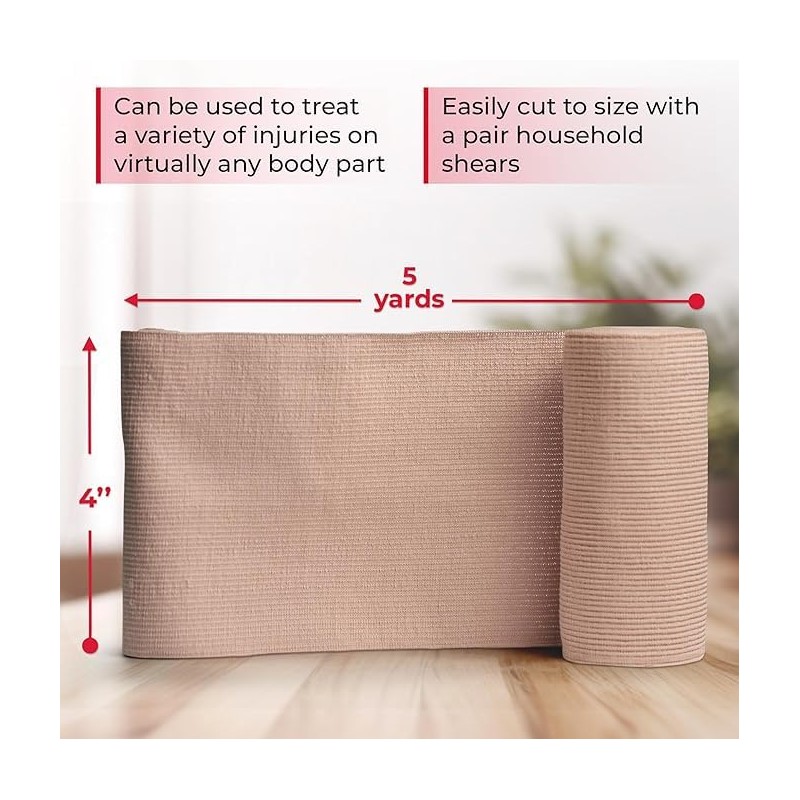 - Versatile: Pack of 10 elastic bandage wraps, each 4 inches wide and 5 yards long when stretched, suitable for customized compression on knee, ankle, wrist, and more.