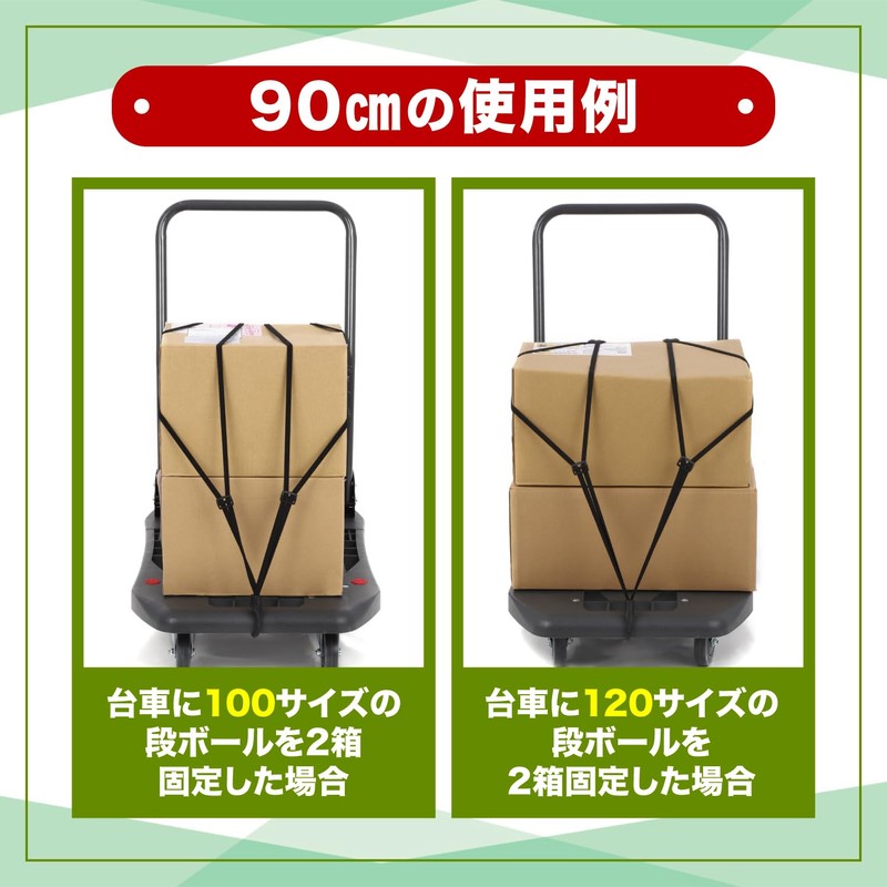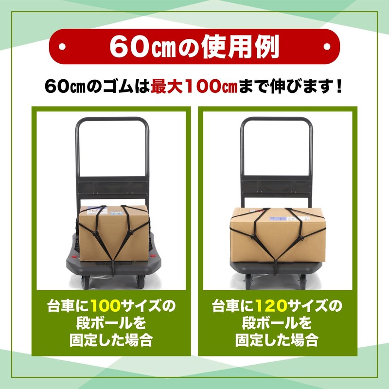 Elastic Cord, Cargo Carrier, 2-piece Set, Bicycle, Bike, Bungee Cord, Carry Cart, Cargo Fastening, Prevents Loads from Collapsing (1 x 23.6 inches (60 cm) + 35.4 inches (90 cm) x 1 Piece)