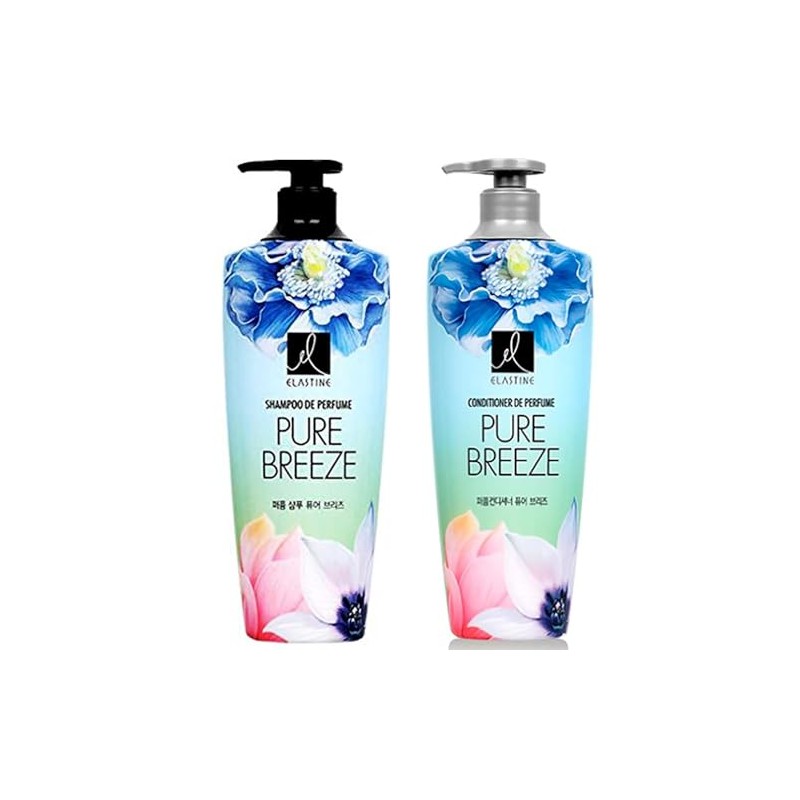 Elastine Perfumed Pure Breeze Shampoo & Conditioner Set | 600ml x 2 | Long-Lasting Floral Fragrance | Silky Hair Care for Women & Men | K-Beauty Hair Treatment