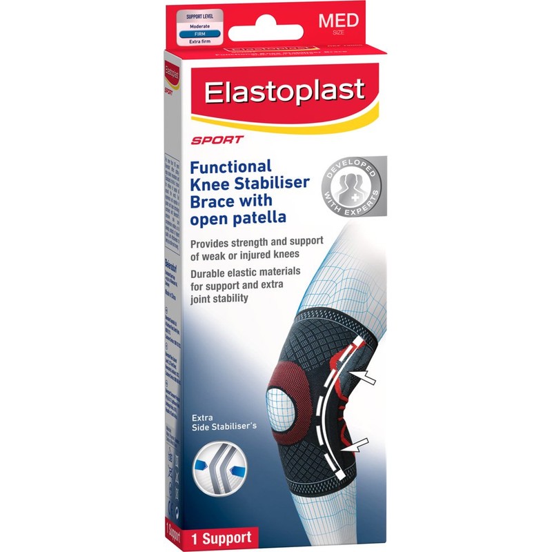 Elastoplast Sport Functional Knee Stabiliser Brace with Open Patella - Size Medium (1 Pack) | Compression Knee Guard | Supports Weak & Injured Knees | 4-Way Stretch for Flexibility