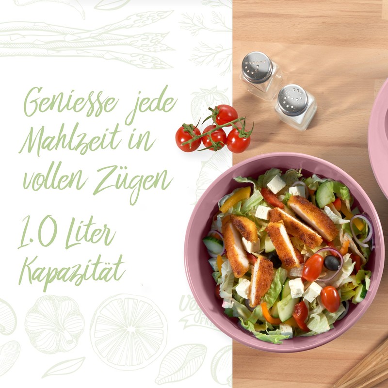 elastoREuse REuse Salad Box Take Away Packaging Food Container to Go 1.0 L Refined Red/Transparent